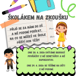 Žáci osmé třídy připravují 28. a 29. 4. 20265 už čtvrtý ročník akce Školákem na zkoušku. I letos pozveme předškoláky ze všech spádových mateřských škol – Krásensko, Podomí, Senetářov a Ruprechtov.